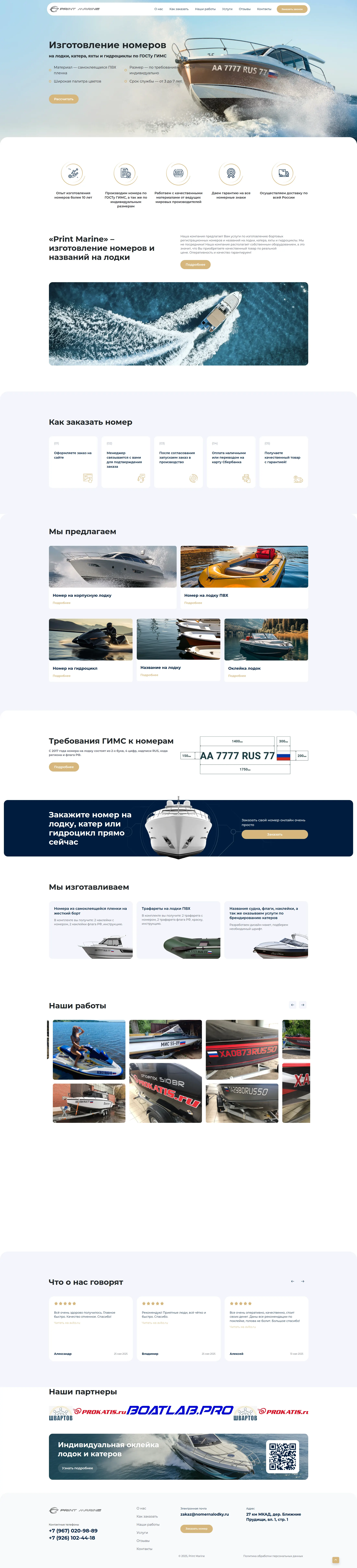 Print Marine — это специализированный сервис по изготовлению регистрационных бортовых номеров для лодок, катеров, яхт и гидроциклов в полном соответствии с требованиями ГИМС и ГОСТ.